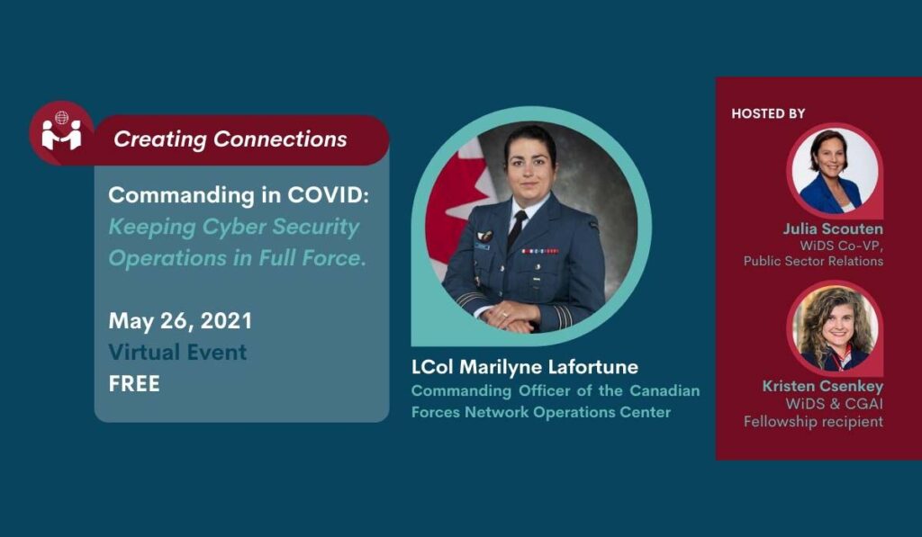 Join us for an hour session where we’ll sit down with the current Commanding Officer of the Canadian Forces Network Operations Center, LCol Marilyne Lafortune to hear about her experience of leading a tactical cyber unit through COVID. We will discuss the challenges that she has faced, how she had to adapt their leadership style, and the opportunities that it presented. This session will be hosted by Julia Scouten and Kristen Csenkey and we will open it up to questions from the audience.